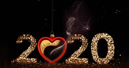 2020 Happy New Year for healthcare, Wellness and medical concept. Stethoscope with red heart and wooden number on table background