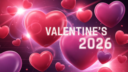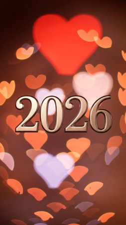 Eye-catching design featuring a vibrant pink heart and glowing number 2026. Perfect for celebrating future love events, occasions, or visual communications!