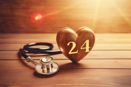 A vibrant red heart symbolizing love and care is paired with a stethoscope, representing health.