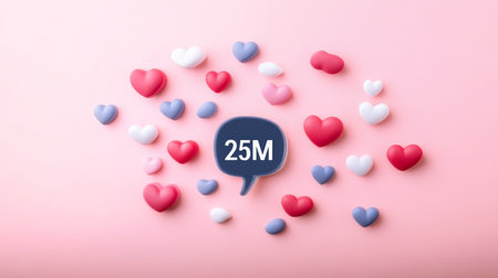 25 Million Celebration, Social Media Milestone on a Pastel Pink Background with Hearts, Flat Lay