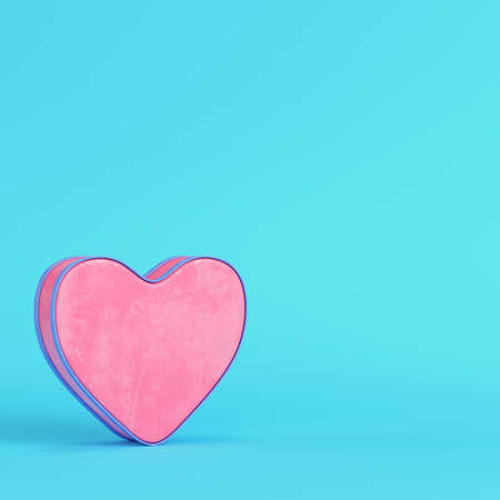 Pink heart on pastel blue background. Minimal Valentines day concept.
