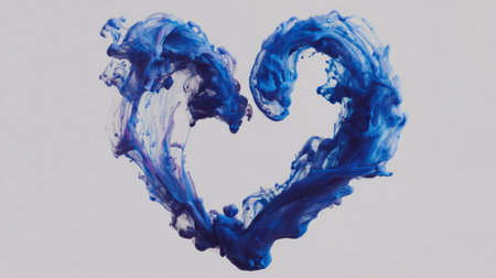 A heart made of water, a liquid, is elegantly placed on a table. It symbolizes fluidity and the beauty of the natural world with its electric blue hue