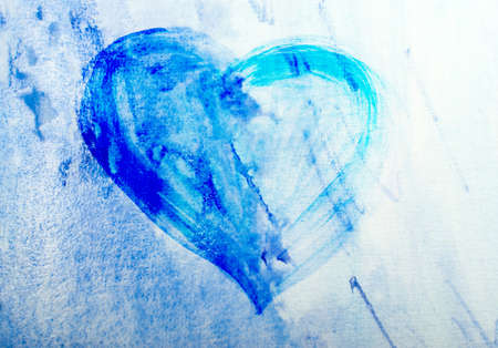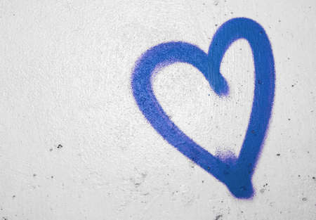 Concept or conceptual painted blue abstract heart shape love symbol, dirty wall background, metaphor to urban and romantic valentine, grungy style.