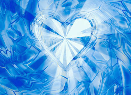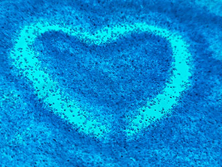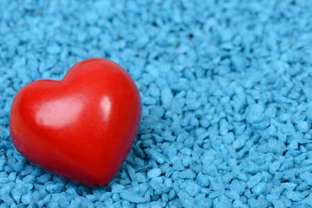 The heart is blue in close-up. Lots of space for text. The concept of love