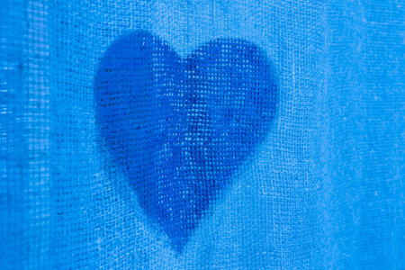 Blue textured canvas background with heart shape cutout close up
