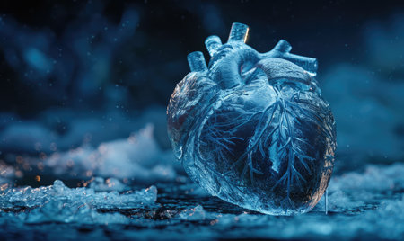 Realistic model of a human heart encased in clear ice