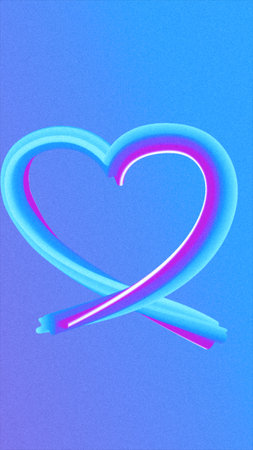 Abstract neon heart shape in glowing blue and pink gradient, symbolizing love, emotion, and digital connection.