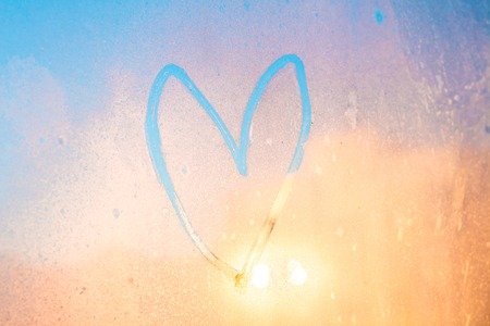 Heart painted on winter glass