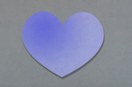 one paper blue heart cut out on colored background close up