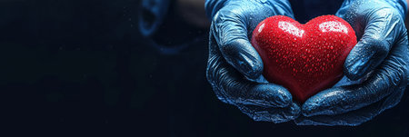 medical professional wearing gloves holds a red heart symbol, representing healthcare, compassion, organ donation, and cardiovascular health. Generative AI