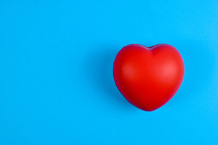 Heart model on a blue background, close-up, selective focus