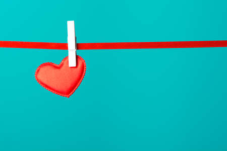 Red heart on light blue green background