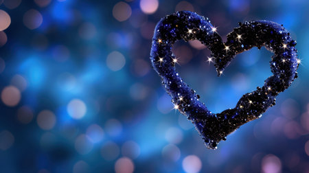 A captivating heart shape adorned with shimmering stars against a dreamy blue bokeh background. This enchanting image evokes feelings of love and magic, perfect for various romantic themes.