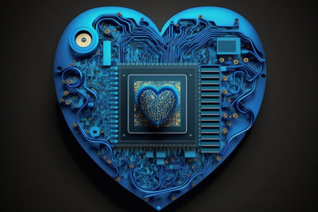 A Blue Heart-Shaped CPU Symbolizes Love's Central Processing Unit. AI