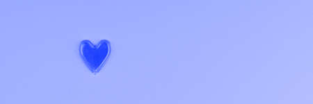 Happy Valentine Day. Beautiful card wallpaper with small red heart in centre on blue background. Concept of love February holiday. Web banner header for website.