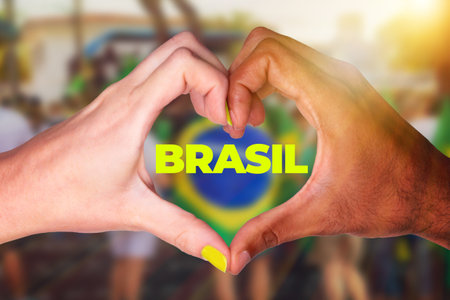 Hands Heart Symbol Brazilian Flag