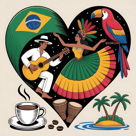 Illustration of a long shadow Brazil flag with a heart