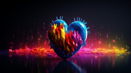 Colorful abstract heart on dark background. 3D Rendering.