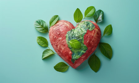 Vibrant heart artwork displaying earth's continents on colorful mosaic background.