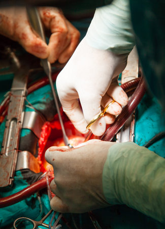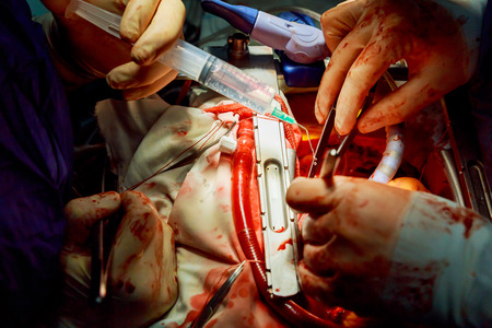 Cardiac surgery with cardiopulmonary bypass. Image with shallow DOF.