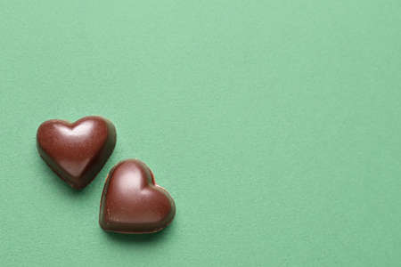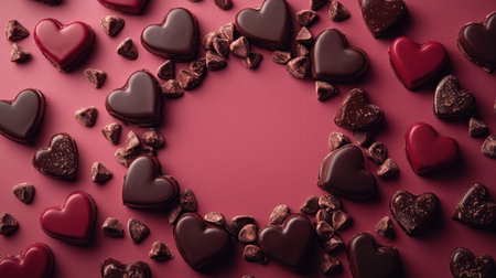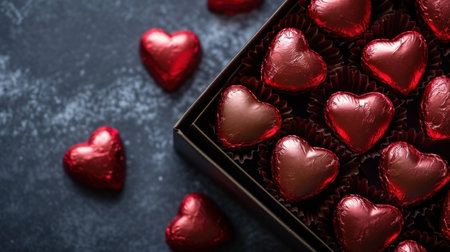 A delightful arrangement of heart-shaped chocolate treats set against a stylish background. Perfect for celebrations, romantic moments, or any sweet occasion.