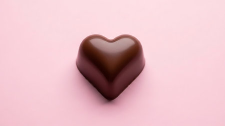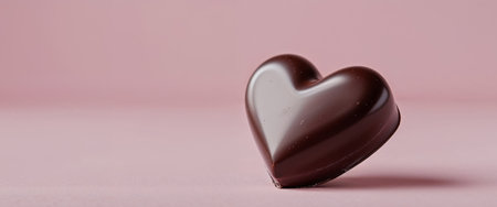 A heart-shaped chocolate sits elegantly on a soft pastel background, perfect for conveying love and sweetness during celebrations and special moments.