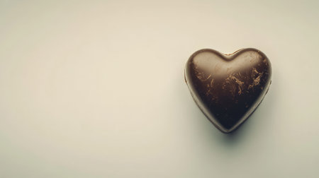 A beautifully crafted dark chocolate heart placed on a soft minimalist background, perfect for expressing love and affection on special occasions.