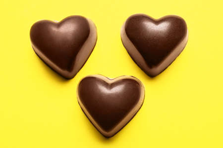 Heart-shaped chocolates on a pink background, sweet treats and love concept