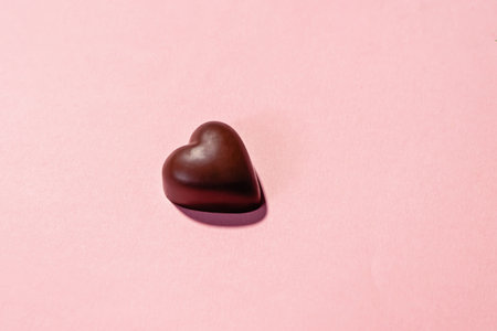Heart-shaped chocolate isolated on a soft pink background, Valentine's day treat