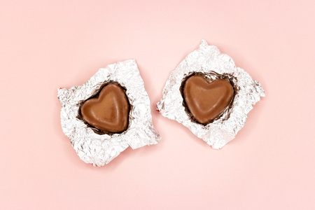 pink foil wrapped chocolate heart shape candy Valentine's Day