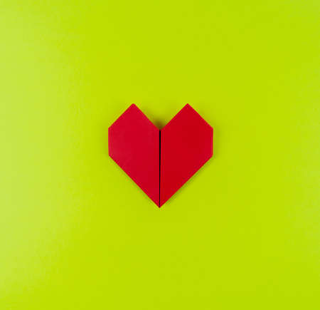A vibrant red paper heart sits against a two-tone red background, ideal for themes of love and romance. Perfect for crafts, cards, and creative projects.