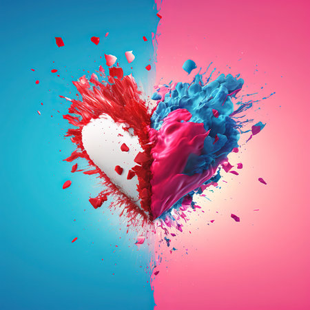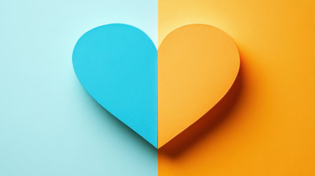 A vibrant heart shape in blue and orange, beautifully contrasting against a split background. This creative design symbolizes love and emotion, perfect for various projects.