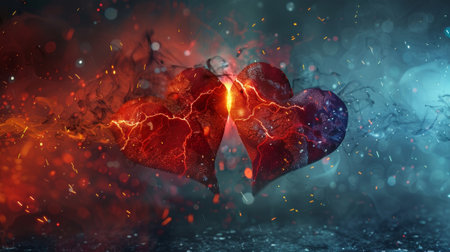 Two Futuristic Heart Shapes with Neon Lights and Sparkles