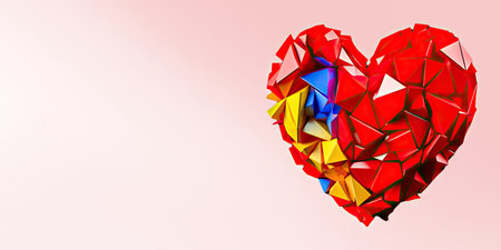 A low-poly style red heart on a white background, with a flat design. This is a vector illustration, a 3D rendering, and a work of digital art. The image has high resolution, high quality, and high detail, with a sharp focus. It has a hyper-realistic and hyper-detailed photographic style, and is isolated on a white background. --chaos 30 --ar 16:9 --v 6.1 Job ID: 7e28e6cd-7c90-466d-b8eb-891fa73dcea2