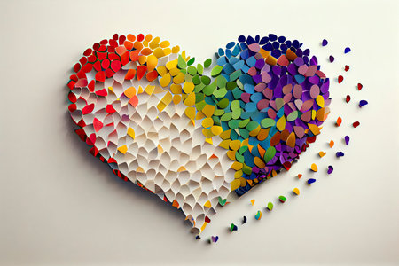 LGBTQ Rainbow made out of hearts with white background.Generative AI