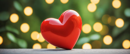 Big red shiny heart on bokeh effect background. Valentine's day illustration. Generative AI