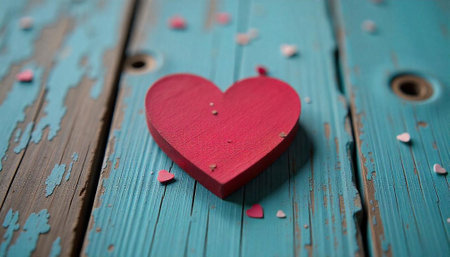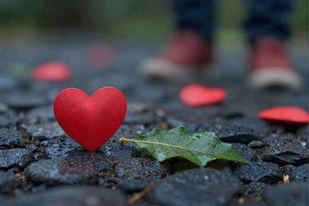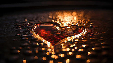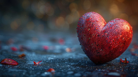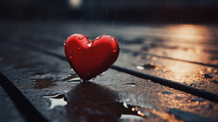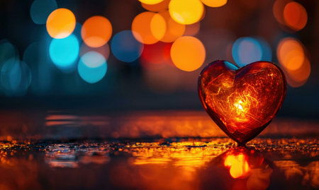 A solitary heart symbolizing love and romance stands against a chilly backdrop, with warm light caressing its edges. A.I.