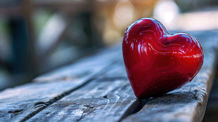 Red glass heart on a book's pages, capturing the essence of romance in a tranquil, literary setting. A.I.