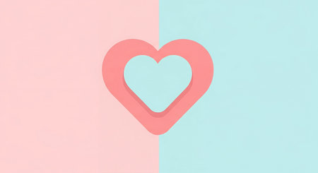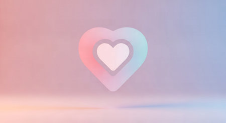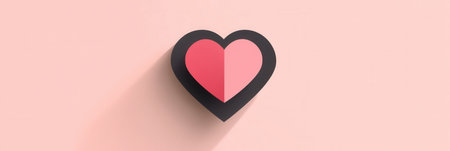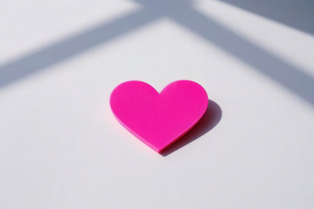 A heart icon features soft shadows and warm pink tones, capturing a minimalist design style ideal for contemporary aesthetics or digital applications.