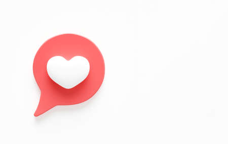 Red heart icon on the smartphone. Social media concept. 3D illustration