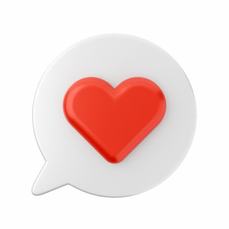 A glossy red heart symbol floats within a rounded white speech bubble icon, set against a stark black background.