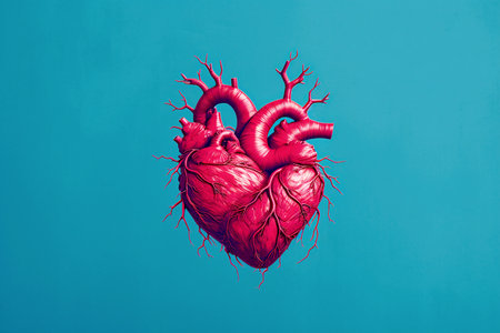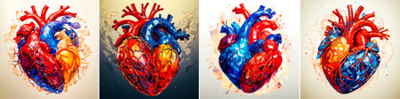 This vibrant artistic representation of heart anatomy captures intricate vascular structures in a unique and colorful design, ideal for educational and decorative purposes.