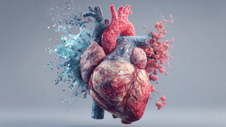 Two detailed heart models blend realistic textures with a modern design set against a gray backdrop.