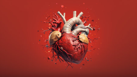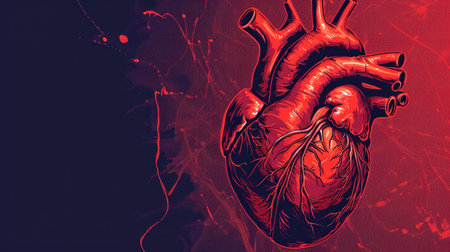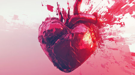 An abstract and vivid illustration depicting a heart attack, showing a human heart with intense colors, visualizing pain and medical emergency concepts.