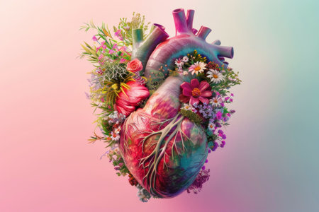 Blooming Heart. A heart adorned with vibrant flowers and leaves, symbolizing life and vitality.