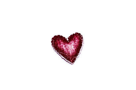 fabric heart on white background, concept of love and Valentine's Day