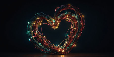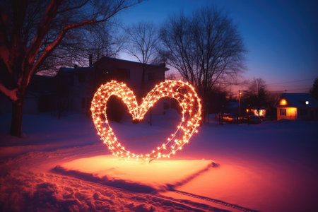 lit-up christmas lights forming a heart shape, created with generative ai