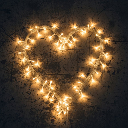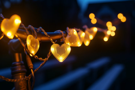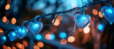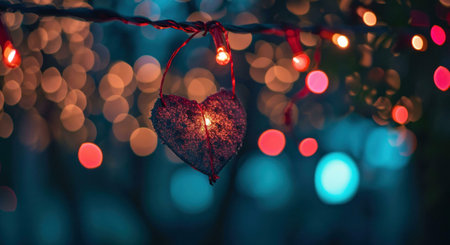 A charming heart-shaped string light elegantly suspended, perfect for adding a romantic touch to Valentine's Day celebrations and creating a warm, inviting atmosphere.