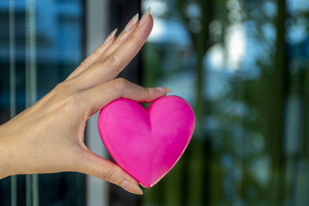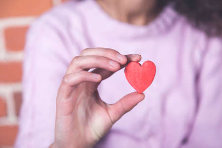 young woman hand holding red heart