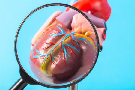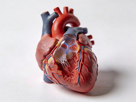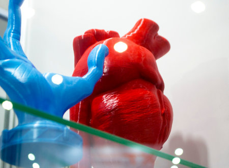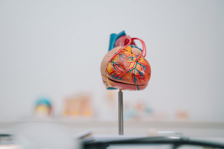 Human heart model in a science laboratory, close-up view.